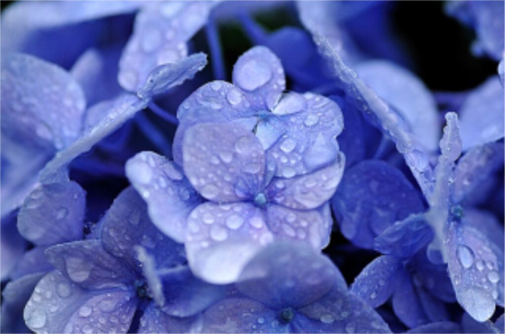 私はこの時期がとっても大好きです。紫陽花や花菖蒲、葉っぱについた雨の水滴、水たまりに跳ねる雨のしずく。眺めているだけで心が癒されます。