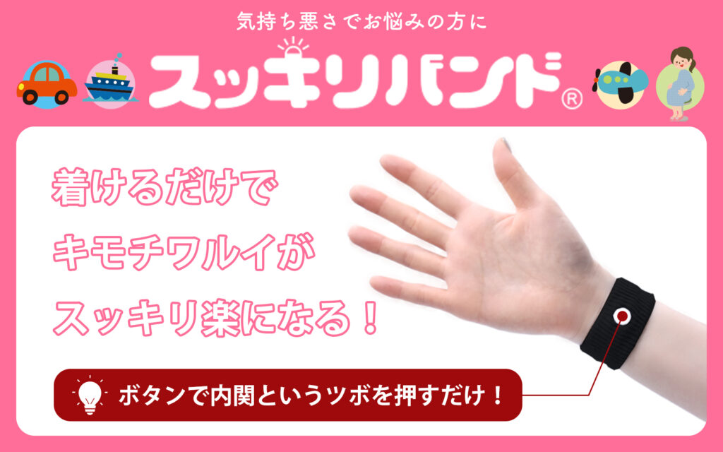 - 手首にあるツボを刺激することで乗物酔い・つわりが軽減される